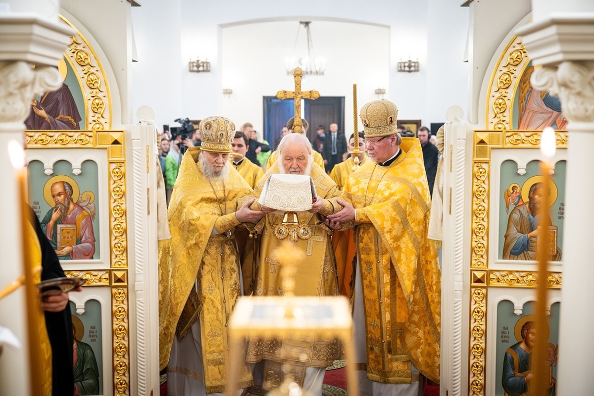 По завершении Божественной Литургии настоятель храма протоиерей Михаил Авраменко сердечно поблагодарил Патриарха за Великое освящение храма и