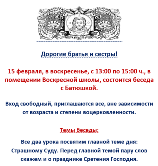 Беседа с Батюшкой в воскресенье, 15.02.26г., в 13:00 Опубликовано в 14.02.2026 pohvala2012 Поделиться:TelegramВКонтактеОдноклассникиGoogleTwitter
