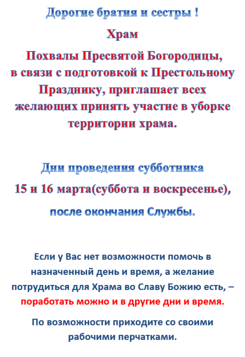 14 и 15 марта — субботник. Опубликовано в 13.03.2026 pohvala2012 Поделиться:TelegramВКонтактеОдноклассникиGoogleTwitter